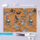 Papel tecidular inspirado na Chinoiserie com corvos de Halloween e padrões Jack-O-Lanterna, adequados a qualquer evento.