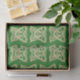Belo e intrincado padrão de ouro e borboleta Céltica branca em fundo verde. A borboleta Celta é um símbolo da alma e renascimento