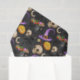 Um padrão de várias coisas do Halloween como chapéus de bruxas, gatos pretos, crânios
