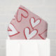 Padrão cardíaco vermelho e branco espalhado em um fundo rosa.