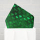 Papel de seda com padrão de corações e lantejoulas metálicas verdes esmeralda.