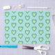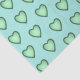 Papel tecidular. Corações de amor verde num fundo cor de laranja pálido.