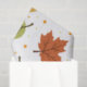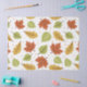Papel de cor laranja, verde e amarelo que apresenta o padrão das folhas.