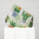 Planta de suculência em fundo verde de gingham, Aloe vera, Cacto de pera picante, Ouro de Barrel e Aeónio.