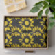 Papel tecidular impresso com padrão original de girassol amarelo ensolarado sobre fundo preto.