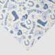 Padrão lúdico em tons de azul e branco com elementos costeiros/cowgirl (bota de cowgirl, chapéu, ferradura, cavalo, estrelas, laços, cerejas, cavalo-marinho, estrela-do-mar, concha, tipografia howdy, yeehaw) como presente de festa/embalagem para despedida de solteira, chá de noiva, festa de aniversário, festa de formatura, etc.