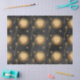 Este design celeste mostra sóis e cetros ouros em um fundo preto. Perfeito para trabalho de arte de dissociação, artesanatos de papel ou empacotamento de presentes.