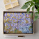 Um padrão floral encantador e muito bonito com flores azuis misturadas com arranjos florais roxos, com uma dica de verde para contraste. No fundo, atrás de todos eles, está um fundo de ouro impressionante.