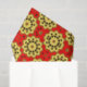 Padrão geométrico decorativo sem costura, com formas geométricas em vermelho, amarelo e preto.