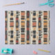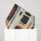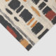 Papel tissue com padrão geométrico terroso inspirado em tecidos tribais de barro, apresentando retângulos pintados à mão, diamantes e triângulos em preto carvão e terracota sobre um fundo bege texturizado. Um design boho quente ideal para amantes de decoração rústica, fãs de estilo artesanal e qualquer pessoa atraída por estética geométrica terrosa.