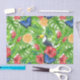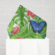 Padrão de aquarela com tucano, borboleta, hibisco e folhas tropicais. Eu pintei elementos para o padrão com aquarelas no papel, e então os digitalizei e fiz o padrão no Illustrator