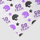Este papel de tecido divertido é versátil e pode ser usado para dar presentes ou projetos de arte e artesanato. O design apresenta capacetes e faz arte em equipe em roxo e preto. Perfeito para aniversários ou Natal.
