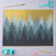 Uma bela design mostrando árvores em uma floresta e um céu ouro. Os tons coloridos incluem tons azuis neutros e ouro. Um design rústico ideal para o outono, outono, decoração do inverno em casa e época festiva de férias.