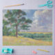 Este design apresenta um trabalho de arte do pintor neoimpressionista francês Maximilien Luce (1858-1941). Mostra uma paisagem rural perto da região de Méréville, que fica na França norte. Há uma bela árvore alta parada orgulhosamente num campo de verde e amarelo. Há nuvens brancas no céu azul.