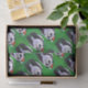 Parada Animal Festivo Panda Bear em Santa Hat sobre presentes verdes no Natal, decorações e suprimentos apresentam nossa divertida trabalho de arte de um belo urso panda decadido em um Papai Noel vermelho pintado pelo ilustrador de livros infantis, Traci Van Wagoner. Na parte de trás de muitos desses presentes animados você também encontrará nosso ursinho panda caprichoso de trás vestindo uma coroa sagrada com um arco de Natal vermelho no fundo dela. Os pandas são muito considerados na China e são ícones da amizade, então dê um belo presente panda para seu amigo hoje. Designs personalizados disponíveis.