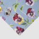 O bonito padrão floral apresenta pansias de cor da água amarela e púrpura e folhas sobre fundo azul-cerulano da moenda.