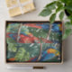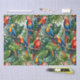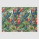 papagaio-papagaio tropical embrulhando papel com folhas de palmeiras, papagaio vermelho, papagaio azul e amarelo brilhante plástico exótico colorido