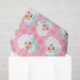 Ilustrações de estilo Vintage de uma face de Papai Noel vestindo um Papai Noel verde-menta que são colocados contra um fundo rosa padronizado neste papel de tecido com um olhar retrô.