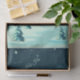 Ho ho ho Feliz papel festivo de Natal desenhado com uma ilustração vintage de Papais noeis no trenó sendo puxados por suas renas. As estrelas pequenas espalham o céu noturno. A neve cobriu pinheiros no chão. Sensação retrô de safena.