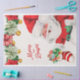 Papais noeis bonitos de colheita com uma meia festiva de Natal cheios de doces e guloseimas. Leituras de texto: Feliz e Brilho.