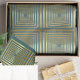 Papel de cor azul clara, decorativo, elegante e glamouroso, e papel de tecido dourado com quadrados de ouro brilhantes intricadamente ligados para produzir uma ilusão 3D cativante.