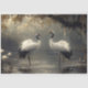 Essa pintura serena apresenta um par gracioso de guindastes em um pântano suave, cercado por tons atmosféricos suaves que evocam um senso de tranquilidade. Os detalhes delicados e a paleta colorida criam uma cena de natureza eterno e elegante, perfeita para amantes da arte de pássaros e pantanais.