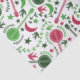 Este lenço é perfeito para presentes de Natal para jogadores de banjo. Ele tem um padrão de arte popular com ilustrações de banjos, pássaros, luas, estrelas e acentos de vinha botânica em tons de verde e vermelho sobre fundo branco.