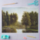 Este design apresenta uma pintura do artista francês Jean-Joseph-Xavier Bidauld (1758-1846). Mostra uma bela paisagem ao redor de um lago barco num parque em Mortefontaine, França norte. O lago parece um rio. Há um barco na água com pessoas a desembarcar. Há também cisnes a nadar na água. Árvores altas cercam o lago. O céu é azul brilhante e contém algumas nuvens brancas e espertas. O trabalho artístico original foi pintado em 1806.