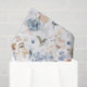Este design apresenta uma ilustração em aquarela de flores rosa claro de pêssego e azul e um pássaro tropical.