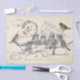 Este design de cartão postal de desvinculação apresenta uma trama perversa de robins europeus de peito vermelho em um galho com um endereço parisiense vintage e marcadores postais. Grande o suficiente para transferências de móveis!