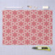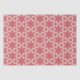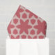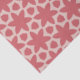 O padrão apresenta um design simétrico, repetindo com um motivo floral ousado. Consiste em formas em duas cores principais: um vermelho coral profundo e um fundo rosa pálido. O elemento central é uma flor grande, estilizada, com seis pétalas em vermelho-coral. Ao redor desta flor estão formas geométricas adicionais, incluindo formas semelhantes a pétalas e poligonais, criando um design equilibrado e harmonioso. O fundo cor-de-rosa claro fornece um contraste suave, fazer as formas vermelhas do coral se destacam de forma destacada.