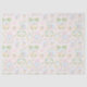 This Christmas tissue paper features pastel nativity scenes of baby Jesus sleeping in a manger with Mary and Joseph, three wise men and angels. There is a light pink striped background.