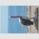 Foto com um olhar irritado é um pelicano na praia numa rocha