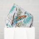 Penas coloridas com cristal azul e tartaruga e samambaias verdes. Modelo de papel tissue personalizável