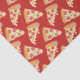 Este papel de presente divertido apresenta um padrão repetitivo de fatias de pizza de pepperoni pingando com queijo.