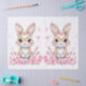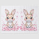 Papel tecidular perfeito para embrulho de presente ou desacoplamento com um coelhinho fofo e flores cor-de-rosa.