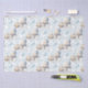 Belo papel de embrulho de Natal com um pequeno boneco de neve azul, poinsettia e galho de pinheiro.