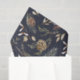 Traga o charme da floresta para o seu embrulho de férias com este lenço de Natal. Apresentando pinecones de aquarela, ramos eververdes e folhagem de inverno em um fundo azul marinho profundo, é perfeito para sacos de presentes, embalagens sazonais e artesanatos festivos.