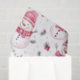 Esses bonitinhos bonitinhos de neve parecem tão felizes na neve. Estão todos vestidos de escarpas brilhantes e cor-de-rosa brilhantes de inverno com os seus bonés correspondentes. Este padrão branco também inclui alguns pedaços de bagas rosadas e vermelhas e Yuletide pine greenery em um design de aquarela vintage.