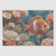 Desanexação de pintura acrílica de peixes e corais e papel de tecido de embrulho de presente.