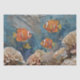 Desanexação de pintura acrílica de peixes e corais e papel de tecido de embrulho de presente.