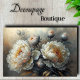 Esta decoupage de peônia com tema branco da Decoupage_Boutique apresenta flores macias em marfim com centros dourados sobrepostos a folhagens ricas e sombreadas. A paleta de cores vintage e o estilo pictórico criam uma sensação de profundidade, elegância e beleza floral atemporal. Um favorito entre artistas que buscam um acabamento floral antigo ou sombrio.