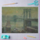 Este design apresenta uma pintura do artista impressionista Ernest Lawson (1873-1939). Mostra a Ponte do Brooklyn, que é um famoso marco na Nova Iorque (NYC). A ponte atravessa o rio leste entre a ilha de Manhattan e o Brooklyn em Long Island. Quando abriu em 24 de maio de 1883, a ponte do Brooklyn era a ponte suspensa mais longa do mundo, com uma extensão principal de quase 1.6000 pés. Foi a primeira travessia fixa do rio Leste. A ponte foi originalmente chamada de Ponte de Nova Iorque e Brooklyn ou Ponte do Rio Leste, mas foi oficialmente renomeada a Ponte do Brooklyn em 1915. Nesta pintura, um sol amarelo pode ser visto se posicionando na distância atrás da ponte do Brooklyn. A luz do sol está refletindo sobre a água. A obra de arte original foi pintada por Ernest Lawson por volta de 1920.
