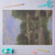 Este design apresenta uma pintura do artista Poste-impressionista espanhol Santiago Rusiñol (1861-1931). Mostra uma paisagem tradicional com uma ponte de pedra arqueada atravessando um rio raso no campo espanhol. Há algumas figuras humanas e uma carroça a atravessar a ponte. A costa é rochosa ao redor da água rasa do rio. No fundo estão árvores altas e florestas. O céu é azul claro com nuvens de cinza espalhadas. É um dia ensolarado no verão ou na primavera. A obra original foi pintada por Santiago Rusiñol por volta de 1884.