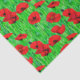 Papel tecidular em semicomboso, padrão aquoso de papoilas vermelhas num campo, contra caules e folhas verdes