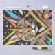 Um design moderno do século Médio, ousado e colorido, com um na moda. A composição vibrante é reforçada por um fundo abstrato geométrico, incorporando a sofisticação lúdica da Era Atômica. Com influências retrorfuturistas e formas dinâmicas, este design captura o charme da era e a elegância caprichosa