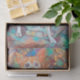 Bonita arte chihuahua, cor azul, vermelha e colorida, um retrato de um cão beige, artesanato papel de desvinculação. Min pin mix Bonito, elegante, trendy, legal, chic, plástico psicodélico de design. Imagem copyright Marg Seregelyi Photography.