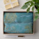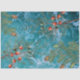 Cruzando ondas azuis profundas no fundo com coníferas e bagas de Natal. Um belo Natal temia design litorâneo ideal para o Natal no Verão ou para as celebrações do Natal litorâneo.