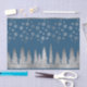 Este falso elegante e do chique boas festas imprimiu o treeline de prata e os flocos de neve no lenço de papel azul do presente do país das maravilhas do inverno são perfeitos para a época natalícia. Seu design festivo mas simples é grande para toda a família ou indivíduo. Aprecie este design bonito e sazonal para uma experiência especial do feriado!