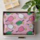 Tecido de presente ou decoração de festas de pijama criativo, com pás cor-de-rosa quente e pás verdes legal e padrão de bolas amarelas sobre fundo cor-de-rosa.